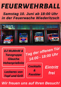 Ab 18 Uhr schließt sich der jährliche Feuerwehrball an, zu dem wir alle tanzfreudigen Mitbürger herzlichen willkommen heißen.