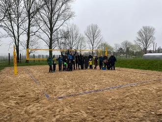 Tapfere Vereinsmitglieder widmen sich bei bei angenehmen Temperaturen und flüssigem Sonnenschein der Sandpflege auf der Beachvolleyballanlage*