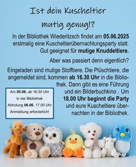 Am 5.6.2025 findet zum allerersten Mal eine Übernachtungsparty nur für Kuscheltiere statt.