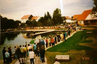 Mit einem Lichterfest weiht Bürgermeister Thomas Kuhnert mit der interessierten Einwohnerschaft das erste deutsche Ökobad in Lindenthal ein. Der Probebetrieb wurde mit 300 Badegästen gestartet und im folgenden Jahr auf 500 Gäste erhöht.