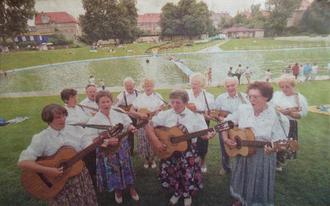 Die Klampfen-Freunde unter Leitung von Ingrid Lippert (vorn rechts) traten auf. Alle gaben zum Abschied ihr Bestes, bevor die Bagger anrollten.