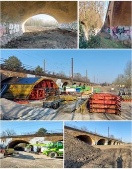 Seit Januar wird an einem Wahrzeichen von Wiederitzsch, dem Viadukt, gebaut bzw. die Sanierung vorbereitet. Die korrekte Bezeichnung des Vorhabens lautet übrigens: Komplex Umbau Bahnhof Wiederitzsch Strecke 6403, km 113,400 – km 118,211. Laut Erläuterungsbericht wird unter anderem „ … die denkmalgerechte Ertüchtigung der Eisenbahnüberführung … geplant. … Zusätzlich sollen auf dem Bauwerk beidseitig Lärmschutzwände mit einer Höhe von 4 m und Oberleitungsmaste integriert werden. ... Das vorhandene Bauwerk Eisenbahnüberführung Delitzscher Landstraße wird zurück und wieder aufgebaut. Nach derzeitigem Planungsstand sind die antragsgegenständlichen Baumaßnahmen nach Erteilung des Planrechts von ca. Oktober 2025 bis März 2028 geplant.“