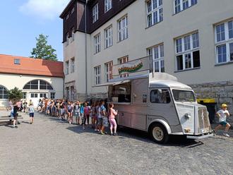 Sportlich wurde es am 20.06.2023, an diesem Tag fand das Sportfest der Grundschule Wiederitzsch statt. Pünktlich 8:20 Uhr startete die Aufwärmung mit einer Aerobic-Einheit. Danach waren verschiedene Disziplinen zu bewältigen, u.a. Weitsprung, Kleiderstaffel, Sprint und Weitwurf. Das Sportfest stand vor allem unter dem Motto: „Dabei sein ist alles“ – und jedes Kind zeigte vollen Einsatz. Aufgrund des einsetzenden Regens, wurde die Siegerehrung auf den 26.06. verschoben. Es gab für alle Teilnehmer eine Urkunde und für die jeweils 3 besten Mädchen und Jungen jeder Klassenstufe, Siegerurkunden und Medaillen. In diesem Jahr mussten die Schülerinnen und Schüler eine Gesamtpunktzahl erreichen um für die ganze Schule eine Überraschung zu „ersporteln“. Die Kinder haben das gemeinsam geschafft und somit rollte am 04.07. ein schicker Verkaufswagen auf den Schulhof und verteilte an alle Kinder Kräppelchen.