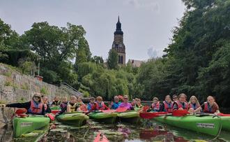 Unsere Schülerinnen und Schüler erfuhren auf dieser Paddeltour viele wissenswerte Dinge über die Stadt Leipzig und ihre Gewässer.