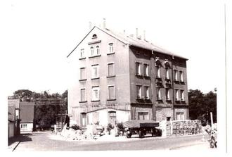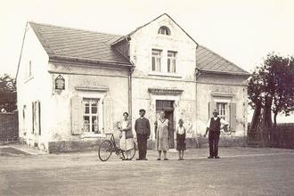 Foto 1940 Der Schankwirt hatte wegen Ordnung und Sauberkeit an der Fernstraße Leipzig-Magdeburg stets die Aufforderungen der Gemeinde zu befolgen, den Pferdeschmutz zu beräumen.