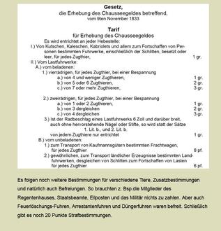 Einheitlicher sächsischer Chausseegeld-Tarif vom 9. Nov.1833