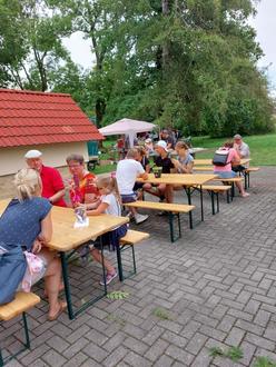 Es wurde gehandelt, gefeilscht, verschenkt und getauscht. Mehr als 40 Verkäuferinnen und Verkäufer waren dem Aufruf zum Breitenfelder Trödelmarkt gefolgt und boten auf den schattigen Plätzen rund um den Backofen ihre Waren an. Von Schallplatten und Sportgeräten über Kinderspielzeug, Dekoartikel, Werkzeug und Kleidung war alles dabei. Manchen von ihnen fiel es gar nicht so einfach, Preise festzulegen. Deshalb wurde an einem Stand kurzerhand ein Schild geschrieben mit dem Hinweis: „Bitte zahle so viel, wie es Dir wert ist.“