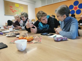 Begleitet von Weihnachtsduft und guter Stimmung wurde auch dieses Mal konzentriert am Handy gearbeitet. Das Prinzip ist einfach: Ältere Menschen stellen ihre Fragen zum Thema Smartphone und Internet und Schüler des Gymnasiums helfen direkt mit den digitalen Problemchen umzugehen. Individuell und unkompliziert. Dass das Konzept funktioniert konnte bereits vier Mal in diesem Jahr bewiesen werden. Generationsübergreifender Nachhilfeunterricht und das mit Freude an der Sache.