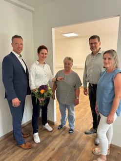 Schon bald zieht geschäftiges Treiben in die neuen Räumlichkeiten auf der August-Bebel-Straße 19 - 23 ein. Die Freude auf beiden Seiten war groß, als Geschäftsführerin Julia Kurze mit tatkräftiger Unterstützung durch Bürgermeister Michael Herfort am 2. September 2024 durch die neu entstandenen Räume führte und anschließend die Schlüssel an Pflegedienstleiterin Angelika Schmidt, ihre Stellvertreterin Dana Hocker und den Geschäftsführer des Caritasverbandes Oberlausitz Torsten Bognitz übergab.