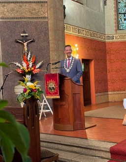 Bürgermeister Michael Herfort überbrachte ein Grußwort und gratulierte dem neuen Pfarrer herzlich zur Ordination. Einer Einladung ins Rathaus wird Herr Sittner demnächst folgen.