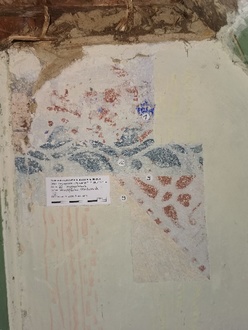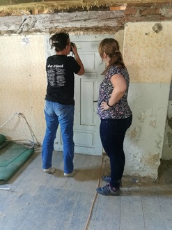 Nach vielen Planungsgesprächen, Begehungen von Umwelt- und Denkmalschutz ist nun endlich auch Bewegung an und im Objekt zu sehen. Erste Sicherungsmaßnahmen an Dach und im Innenbereich wurden vorgenommen und das Projektschild angebracht. Im August führten zwei Restaurateurinnen farbarchäologische Untersuchungen in den Innenräumern durch und konnten interessante Farbzeichnungen herausarbeiten.
