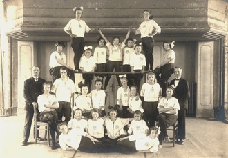 Die Nachfahren von Julius Hünlich vor dem Pariser Fass am Tag der Einweihung der Julius Hünlich Turnhalle