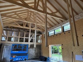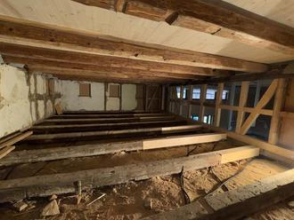 Im Monat Oktober wurden die Bauarbeiten an unserer größten kommunalen Baustelle weiter fortgeführt. Die Dachdämmung sowie die Unterspannbahn wurden durch die Fa. Garth aus Neukirch eingebaut und somit ist unser Gebäude erst einmal vor Regen geschützt. Durch die Fa. Beesdo aus Steinigtwolmsdorf wurden die Fenster und Türen in den Neubaubereichen montiert, die Fa. Elektroanlagenbau Bautzen ist mit der Rohinstallation der Elektroanlage gut vorangekommen und auch die Fa. Tauchmann aus Dürrhennersdorf hat sowohl im Innenbereich die Reparaturarbeiten an maroden Holzbauteilen fortgesetzt als auch mit den Arbeiten an der Außenwandverschalung begonnen. Ebenso begann Ende Oktober das Gewerk Trockenbau (Fa. Runge aus Neukirch) mit den Arbeiten. Der Stadtrat hat in seiner Sitzung am 22.10.2025 die Leistungen für das Los Fliese/Estrich an das Wilthener Unternehmen Fliesen Czernecka vergeben und Anfang November erfolgten die Submission für die Lose Tischler, Treppen, Maler und Innentüren.