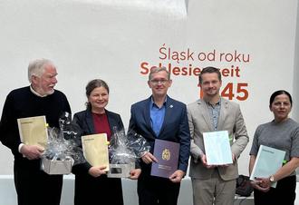 Im Lichthof des Schlesischen Museums zu Görlitz fanden sich am 12. November 2024 maßgebliche polnische und deutsche Persönlichkeiten ein, um den bisher beispiellosen Akt einer dreiseitigen Vertragsunterzeichnung begleiten zu können: Die Unterschriften des Vorsitzenden des Schlesischen Heimatbundes Kreis Löwenberg e. V., Henning Wätjen, der Direktorin des Schlesischen Museums zu Görlitz, Dr. Agnieszka Gasior, und des Bürgermeisters der Stadt und Gemeinde Lwówek Slaski (Löwenberg in Schlesien), Dawid Kobialka (Foto von links), ermöglichen nunmehr auf lange Sicht das Fortbestehen der etwa 4600 Objekte der Löwenberger Heimatstube. Heimatstuben als Sammelpunkte wertvoller Kulturgüter und Orte des Gedenkens der unzähligen Heimatvertriebenen entstanden seinerzeit überall in Westdeutschland – hingegen war solches im Osten „unerwünscht“. Die längste Zeit waren die Exponate der Heimatstube Löwenberg im Patenkreis Hannover ausgestellt und deponiert, danach als Interim in Ronnenberg/Empelde. Aber auch die vor Jahrzehnten gegründeten über achtzig deutschen Heimatstuben (Quelle: Bundesinstitut für Kultur und Geschichte des östlichen Europa) kamen oder kommen allmählich „in die Jahre“, war und ist ihre Zukunft wegen stark reduzierter finanzieller und zeitlicher Ressourcen gefährdet, um solche Schätze wie historische Ansichtskarten, Fotos, Landkarten, Grafiken, Gemälde, Erlebnisberichte, breit gefächerte Bibliotheken und komplette Sätze der Heimatzeitungen „Löwenberger Heimatgrüße“, „Bote aus dem Queistale“ und „Iser-Gebirgs-Heimat!“... verfügbar zu halten. Die Löwenberger Sammlung ging nun als vertragliches Geschenk in die bewährten Hände der Frau Direktor Gasior des Schlesischen Museums zu Görlitz über und steht fortan - ebenfalls per Vertrag vereinbart - Herrn Bürgermeister Kobialko als Dauerleihgabe zur Verfügung. Allen Besuchern waren die Zufriedenheit und Erleichterung über diese kühne, diese modellhafte Lösung anzumerken, noch bevor die Vertragsunterschriften getrocknet waren. Zwar fand somit ein langwieriger und anstrengender Prozess („die Mühen der Berge“) seinen vorläufigen Abschluss, aber die „Mühen der Ebenen“ stehen schon bald vor dem Verein LTR Lwoweckie Towarzystwo Regionalne mit Robert Zawadzki an der Spitze, der die fachgerechte Lagerung der Dokumente und deren Präsentation in den niederschlesischen Städten Greiffenberg/Gryfow, Löwenberg/Lwówek Slaski und Liebenthal/Lubomiercz ermöglichen wird. Das ändert nichts am Besitztum des Schlesischen Museums. Fast alle Materialien der Heimatstube Löwenberg rühren aus der „alten“ schlesischen Heimat vor 1945 her, um nun wieder dorthin zurückzukehren, weil aufgeschlossene polnische Menschen - heutige Schlesier - an der vergangenen deutschen Lebensweise interessiert sind.