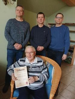 Am 3. Februar überreichte der Vorstand der Imkervereinigung die Urkunde. Die Mitglieder bedanken sich bei Günter Rodehacke für seine tatkräftige Unterstützung und Tätigkeit von 2002 bis 2013 als Vereinsvorsitzender.