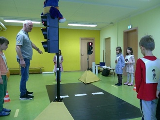 Am 13.02.25 besuchte uns der ADAC. Dabei übten die Vorschulkinder die wichtigsten Verkehrsregeln und das richtige Verhalten im Straßenverkehr.