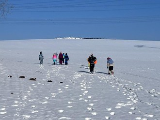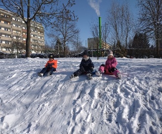 Da es pünktlich zu Ferienbeginn geschneit hatte, verbrachten wir mit den Hortkindern den ersten Ferientag im Schnee und waren auf dem Berg Richtung Irgersdorf Schlitten fahren.