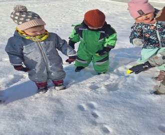 Die Kinder haben viele Spuren im frischen Schnee entdeckt. Wer ist denn durch unseren Garten gelaufen?