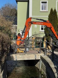 Beginn Abriss und Neubau Brücke An der Aue durch die Firma Neitsch im Auftrag der Stadtverwaltung.