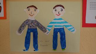 In den nächsten Wochen wollen wir gemeinsam mit den Kindern erkunden und einmal genau beobachten wie wichtig Freunde für unser Glück sind. Dazu sind in den Gruppen schon viele Fragen aufgekommen: Was ist an meinem Freund besonders? Wie werden Freundschaften gepflegt? Wie wird ein Streit geschlichtet? Mit passenden Liedern, Gedichten und Fingerspielen begleiten die ErzieherInnen die Kinder durch das Projekt. Es sind auch schon viele kreative Arbeiten entstanden: