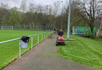Die Aufgaben bestanden darin, dass der Fußweg um den heiligen Rasen aufgefrischt werden sollte, alle Rasenflächen drum herum gemäht wurden, das Äußere vom Vereinsheim und Bratatzes Imbiss hat eine Auffrischung bekommen und vor allem der Ballwald wurde von Sträuchern, Ästen und umgefallenen Bäumen befreit.