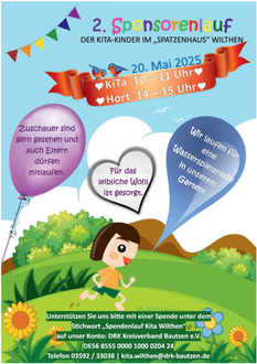 Spenden können Sie sehr gern unter dem Stichwort „Spendenlauf Kita Wilthen“ auf das Konto des DRK Kreisverband e.V., IBAN DE56 8555 0000 1000 0204 24 bei der Kreissparkasse Bautzen.