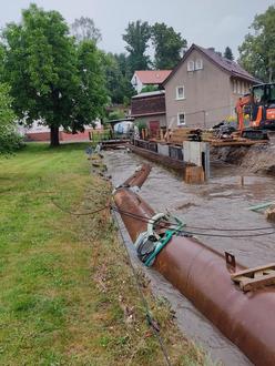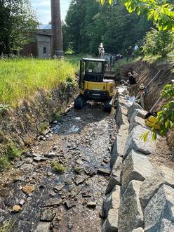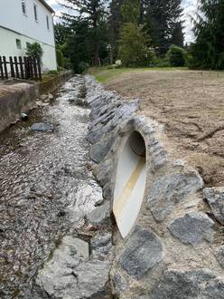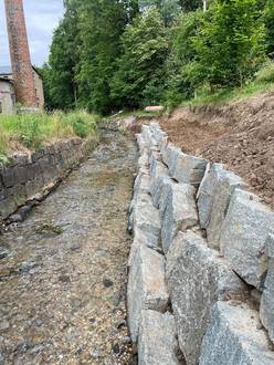 Die Arbeiten am Butterwasser im Bereich der Mittelstraße 39 sind abgeschlossen. Auch die Umverlegung der Einleitstelle des Regenwasserkanals von der Neukircher Straße ist erfolgt. Beim Starkregen am 26.06.2023 hatte dieser Abschnitt seine Feuertaufe unbeschadet bestanden.