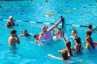 Neben Musik und Unterhaltung gab es zahlreiche Spiele für große und kleine Wasserraten. Ganz Mutige konnten sogar am Boden des Schwimmerbeckens auf Schatzsuche gehen, während Neptun mit seinem Gefolge zur Neptuntaufe schritt.
