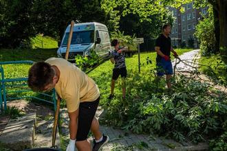 In diesem Jahr waren die fleißigen Schülerinnen und Schüler des Immanuel-Kant-Gymnasiums sogar gleich an zwei Tagen in unserem Wohngebiet unterwegs. Am 4. sowie am 5. Juli beteiligten sich eine der fünften Klassen des Gymnasiums sowie die ukrainische Klasse an verschiedenen Aufräum- und Reinigungsarbeiten in unserem Wohngebiet. Es wurde fleißig Müll gesammelt, die Spielplätze gereinigt und die zahlreichen Bäume und Sträucher verschnitten. Auch der Rosengarten wurde in diesem Jahr wieder besonders bedacht und erstrahlt heute in neuem Glanz.