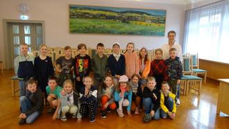 Anschließend hatten wir im Ratssaal des Rathauses einen Empfang beim Bürgermeister Herrn Herfort. Er begrüßte uns mit einem Film über unsere Heimatstadt. Im Anschluss berichtete er über wichtige Vorhaben der Stadt. Natürlich musste er auch neugierige Fragen der Kinder beantworten, z.B. „Macht es Ihnen Spaß, Bürgermeister zu sein?“