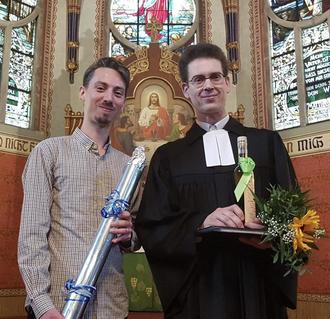 Rechts Dr. Kay Weißflog, welcher in der Vakanzzeit die Pfarrstelle in Wilthen ausfüllte und mit einem edlen Tropfen verabschiedet wurde.