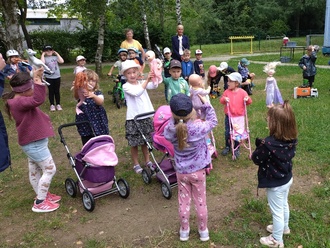 In der vierten Ferienwoche fand am 23.07.25 ein Spielzeugtag für alle Kinder von Krippe und Kindergarten statt. Mit der Besonderheit, dass sie auch Spielzeuge für Draußen mitbringen konnten: Laufräder, Roller, Puppenwagen, Bagger, Lastwagen und noch vieles mehr haben die Kinder an dem Tag von Zuhause mitgebracht. Stolz präsentierten sie ihre mitgebrachten Sachen im großen Morgenkreis im Garten und spielten anschließend mit ihren Freunden.