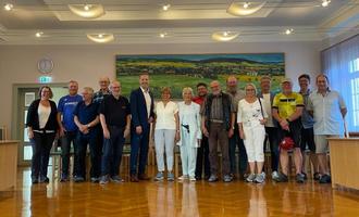 Am 12. Juli 2025 wurde die Radfahrgruppe um Dr. Zahn und die stellvertretende Bürgermeisterin Renate Schmidt durch den neuen Bürgermeister von Eppelheim, Matthias Kutsch, vor dem Rathaus unserer Partnerstadt verabschiedet und auf die Reise nach Wilthen geschickt.