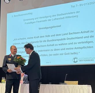 Der Stadtrat der Lutherstadt Wittenberg hat in seiner Sitzung am 30.04.2025 beschlossen, Thomas Janott erneut zum Stadtwehrleiter der Freiwilligen Feuerwehren der Lutherstadt Wittenberg zu ernennen.