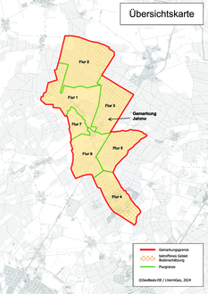 Das Gebiet ist in der beigefügten Übersichtskarte gekennzeichnet. Alle Beteiligten Eigentümer, Erbbauberechtigten und Nutzungsberechtigten werden hiermit über die erfolgte Aktualisierung beschreibender Angaben des Liegenschaftskatasters informiert.