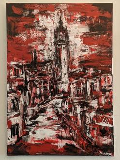 markante Chiffre, die Menschen heute noch eindrucksvoll erleben, wenn Sie sich der Stadt von Süden her nähern. Das Wiedererkennen der Stadt fällt leicht – als charakteristische Punkte fallen sofort die beiden Türme der Stadtkirche und der Turm der Schlosskirche auf. Die Künstlerin Rostislava Todorova, die unter dem Pseudonym Rosty Art arbeitet, versteht es, durch verschiedene Farbigkeit das Stadtbild immer neu zu inszenieren und dem Betrachter so den Eindruck verschiedener Jahres- und Tageszeiten vermitteln. Die Bilder erstrahlen mal leicht und frühlingshaft, mal wirken sie düster, fast schon bedrohlich, wenn schwarze Farbe in dicken Tropfen die Leinwand hinunterläuft. Die Malweise der Künstlerin erweckt dabei immer den Eindruck der Flüchtigkeit, sodass man sie fast als spätimpressionistisch bezeichnen möchte.