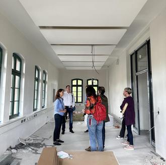 Die Umbau- und Sanierungsarbeiten im ehemaligen K-Gebäude an der Berliner Straße werden voraussichtlich Ende September 2023 abgeschlossen sein. Das Objekt, welches sich auf dem Areal der ehemaligen Kavalierkaserne befindet, wird nach der Fertigstellung sowohl als Bürogebäude für den städtischen Eigenbetrieb Kommunale Bildungseinrichtungen (KommBi) als auch für das Organisationsteam der Landesgartenschau 2027 genutzt.