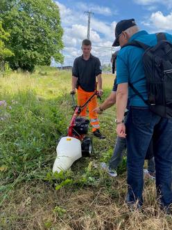 Vorführung des Balkenmähgerätes auf der Blühfläche am Hauptbahnhof, Foto: Stadtverwaltung