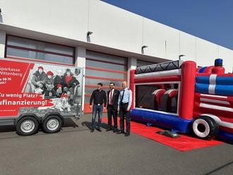 Oberbürgermeister Torsten Zugehör, Björn Kieselstein von der Sparkasse Wittenberg und Christoph Kummer, Fachbereichsleiter Feuerwehr und Sicherheit freuten sich im Rahmen eines Pressetermins am 17.09.2024 eine neue supercoole Hüpfburg an die Kinder- und Jugendfeuerwehren der Lutherstadt Wittenberg übergeben zu können. Die Hüpfburg inklusive Anhänger für den Transport kostete insgesamt ca. 9.000 EUR und wurde von der Sparkasse gesponsert. Oberbürgermeister Torsten Zugehör und Christoph Kummer bedankten sich herzlichen Dank und wünschen nun insbesondere den Jüngsten viel Spaß damit!