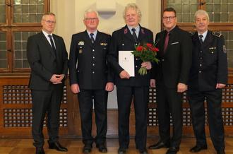 Worte des Dankes und der Anerkennung erhielt auch Gerd Geier, Fachbereichsleiter für den Brand- und Katastrophenschutz vom Oberbürgermeister. Seit inzwischen 40 Jahren – und davon 13 Jahre als Fachbereichsleiter – steht Gerd Geier kompetent und engagiert im Dienste der Lutherstadt Wittenberg und wird Ende März 2023 in den Ruhestand wechseln.