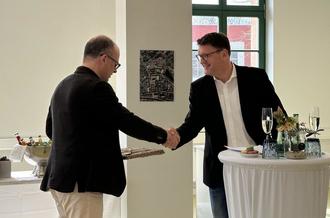 Dr. Mario Kremling, Geschäftsführer der SALEG, und Oberbürgermeister Torsten Zugehör bei der feierlichen Übergabe des ehem. K-Gebäudes Foto: Stadtverwaltung