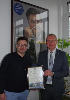 Oberbürgermeister Armin Schenk gratulierte dem Geschäftsführer Dr. Stefan Müller zum Jubiläum.