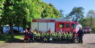 Die Jüngsten Mitglieder der der Kinder und Jugendfeuerwehr Bitterfeld-Wolfen beim "Jugendfeuerwehrtag" im Mai 2023 - ohne Unterstützung wären solche Veranstaltungen nicht möglich.