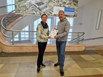 Claudia Hammerschmidt übergibt den Lärmaktionsplan an Olaf Diener.