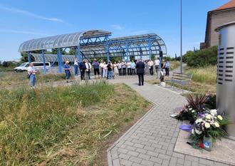 Vertreterinnen und Vertreter der Lokalpolitik, Zeitzeugen und Wegbegleiter hatten sich am Denkmal in der Zörbiger Straße im Ortsteil Stadt Bitterfeld eingefunden.