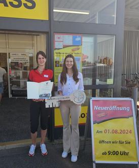 Filialleiterin Lisa Hempel (links) nahm die Eröffnungsurkunde der Stadt Bitterfeld-Wolfen gern entgegen.