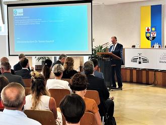 Am 24.08.2023 fand im Ratssaal des Wolfener Rathauses die Eröffnungsveranstaltung des „WIP-Projektes: Wissenschaftlich-technologischer Transfer im Transformationsprozess des Strukturwandels in Sachsen-Anhalt“ statt. Ministerpräsident Haseloff begrüßte die Gäste und freute sich auf die Übergabe des Förderbescheides. Im Laufe der Veranstaltung wurden die Motivation und Ziele des Strukturwandelprojektes vorgestellt sowie im Podium diskutiert.