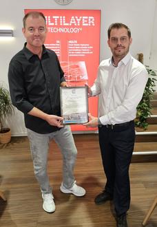 Die Inhaber Tino Gläser (l.) und Christian Gieler (r.) nahmen die Ehrungsurkunde der Stadt Bitterfeld-Wolfen gern entgegen.