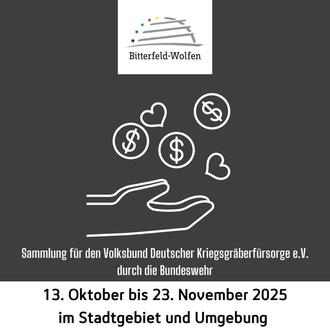 Im Zeitraum vom 13. Oktober bis zum 23. November werden Soldatinnen und Soldaten der Unteroffizierschule des Heeres (USH) im Stadtgebiet Bitterfeld-Wolfen und Umgebung Spenden für den Volksbund Deutsche Kriegsgräberfürsorge e. V. sammeln.