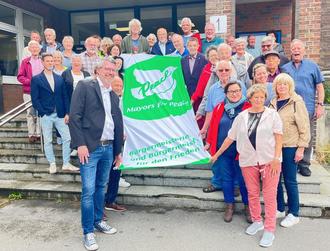 Weltweit mehr als 600 Städte, darunter auch Marl und Bitterfeld-Wolfen, haben am 7./8. Juli ein sichtbares Zeichen für Frieden und nukleare Abrüstung gesetzt. So hisste Bürgermeister Werner Arndt, gemeinsam mit dem Förderkreis Städtepartnerschaften Bitterfeld e. V., die Mayors for Peace-Flagge vor dem Stadthaus.